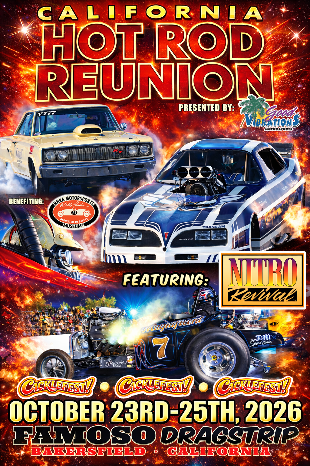 Tickets ON SALE June 1st California Hot Rod Reunion info call 800-759-8679 Email chrr@famosodragstrip.com